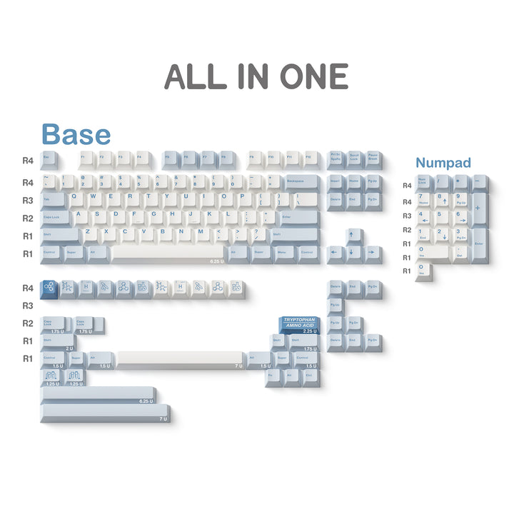 JKDK White And Blue Hydrogen Keycap Cherry Profile PBT Dye Subbed Key Caps For Mechanical Keyboard With MX Switch
